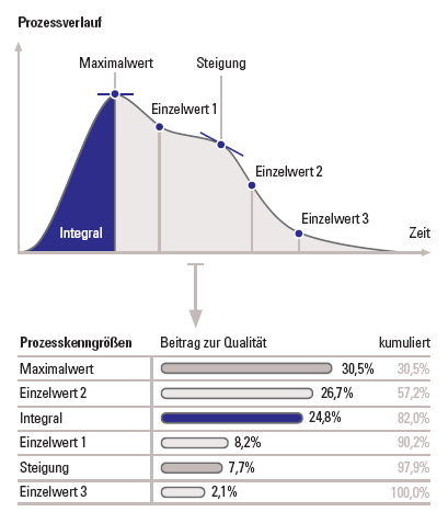 Die tabellarische und grafische Darstellung der Prozesskenngrößen und deren Gewichtung (Beitrag zur Qualität) tragen dabei zu einer wesentlichen Verbesserung des Prozesswissens bei.